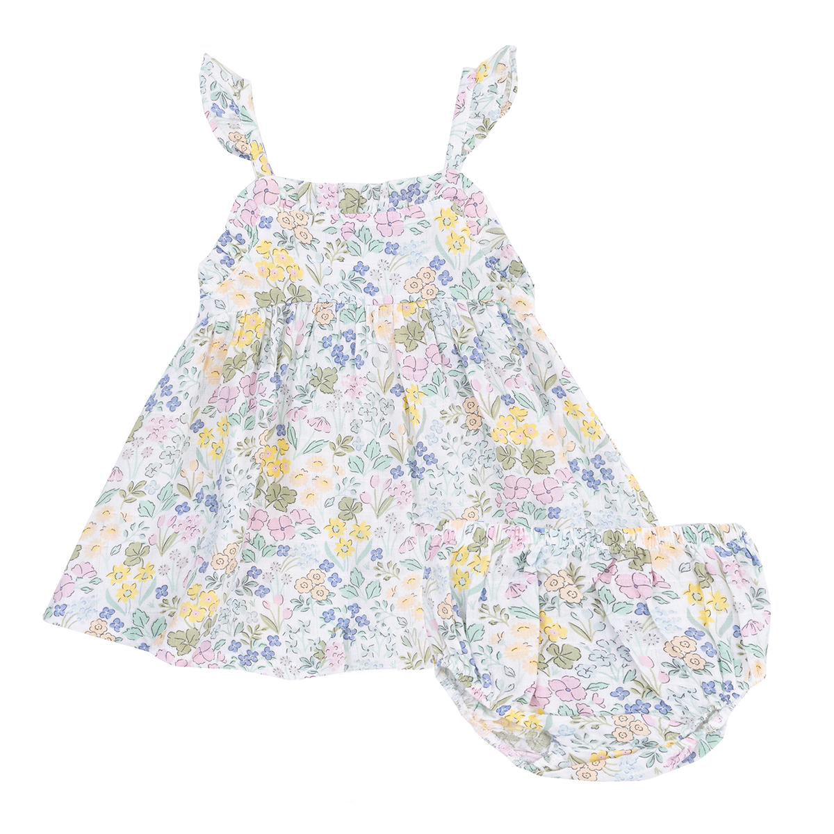 She'll dance through the day in our Samantha Floral Paperbag Ruffle Sundress and Diaper Cover! Designed with an easy relaxed fit in soft, breathable organic muslin, this adorable sundress features a flowy skirt perfect for spinning and twirling.