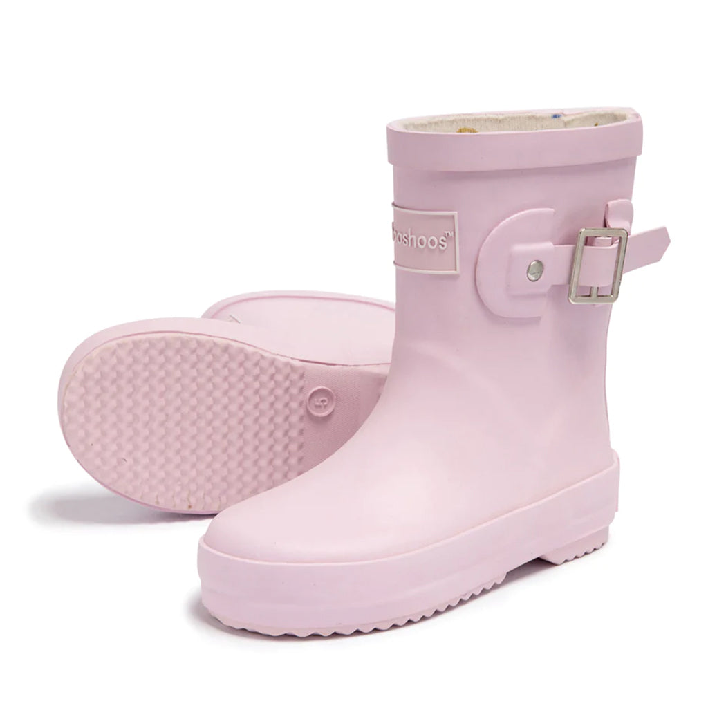 ShooShoos Light Pink Ballroom Rain Boots. A wellington boot designed with care for your little one. Designed with a cushioned insole and a soft flexible outsole to allow for freedom of movement, comfort and safety from the outdoor elements. Let the adventures continue, even on rainy days.
