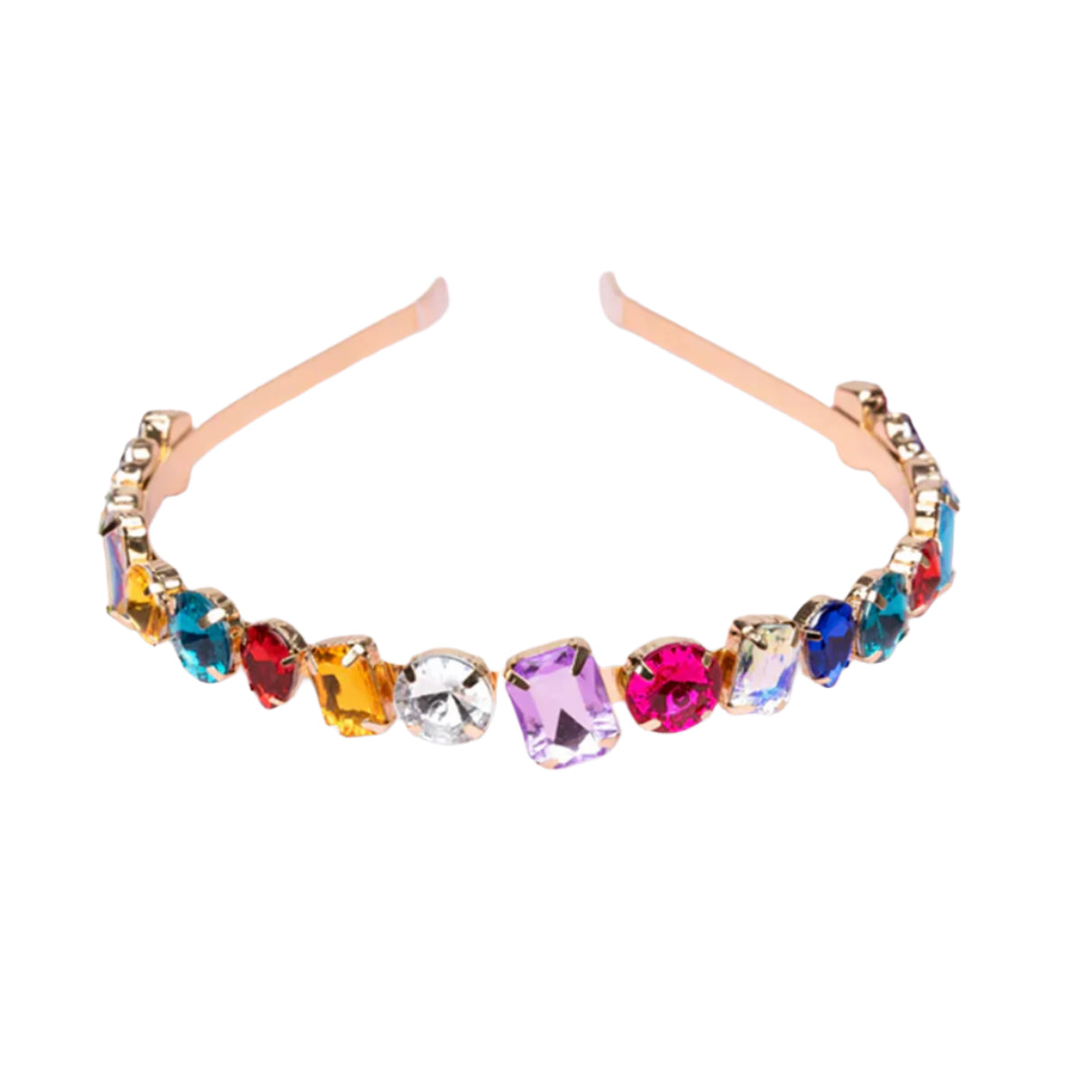 Introducing the beautiful Boutique Chunky Gemstone Headband! The headband features a row of stunning gemstones in a variety of vibrant colors. The chunky design adds a trendy and bold statement to the piece, making it the perfect addition to any special occasion or dress-up ensemble.