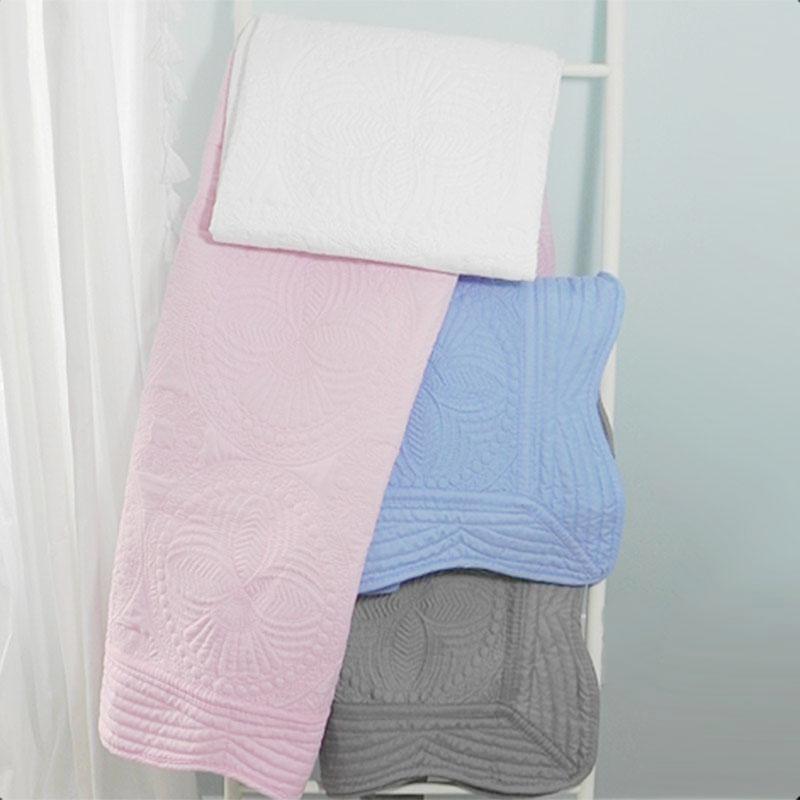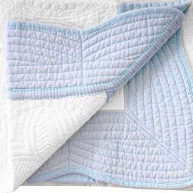 Quilted Heirloom Monogrammable Baby Quilt. The perfect keepsake for your new addition! These high quality quilts have a beautiful scalloped edge and are ready for personalization. 100% cotton. Measures approximately 36" x 48".