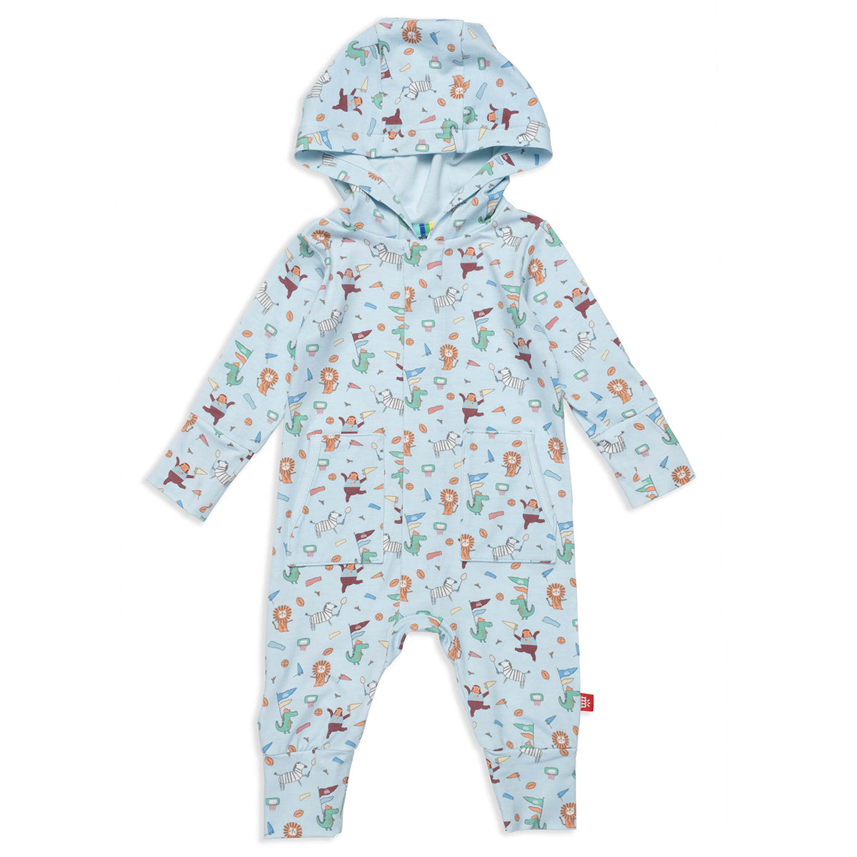 Magnetic Me I Like Big Punts and I Cannot Lie Baby Boy's Hooded Romper. This precious hooded romper has front magnetic closures and is perfect for chilly nights and transitioning weather.